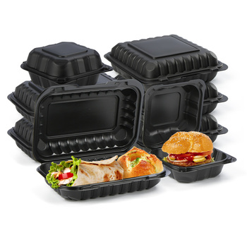 9X6Inch 6X6Inch Verpakking Zwarte Kleur Hamburger Salade Afhaalmaaltijden Lunch Dozen Containers